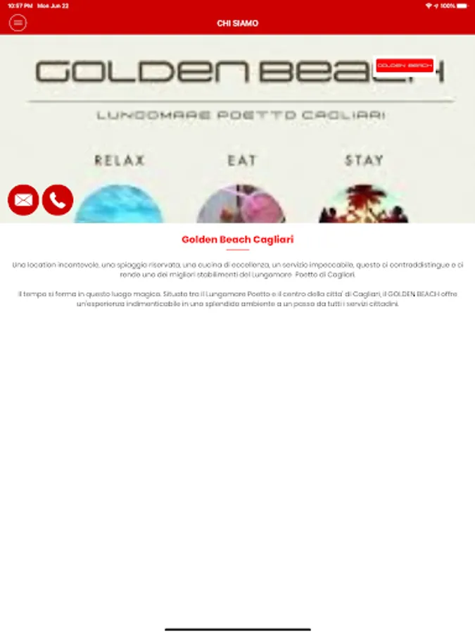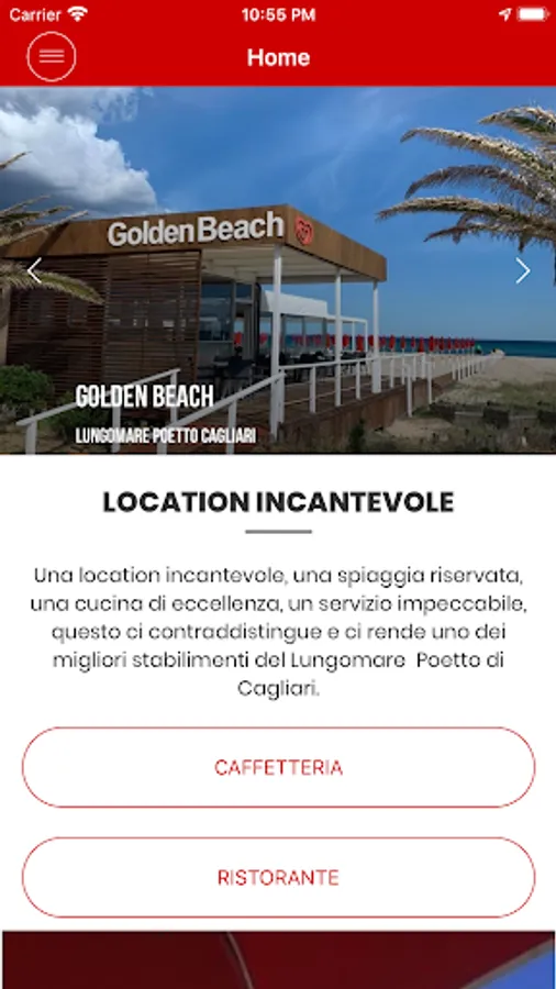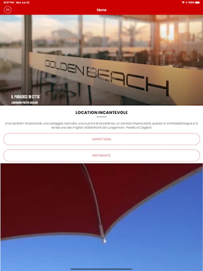 Golden Beach in Cagliari is pleased to present its new mobile application, created to make the experience with our bathhouse even smarter. You can finally book your favorite umbrella, and once on the beach, you can comfortably order anything you want from the app at the bar or restaurant while lying in the sun. You will receive the latest news on all our events via push messages in real time. Make yourself comfortable and download our App!