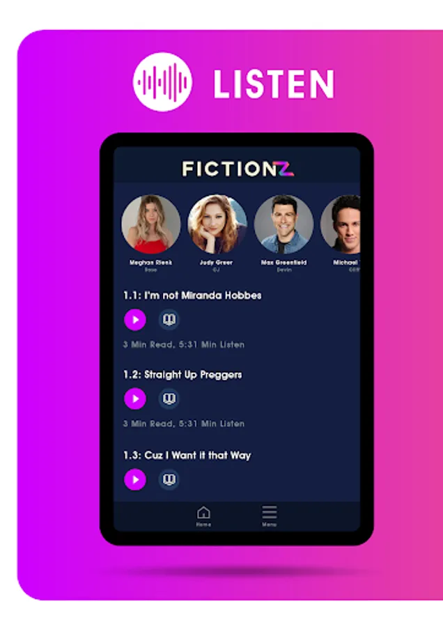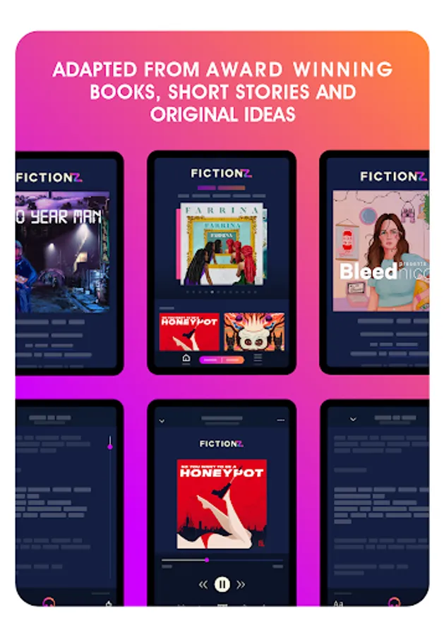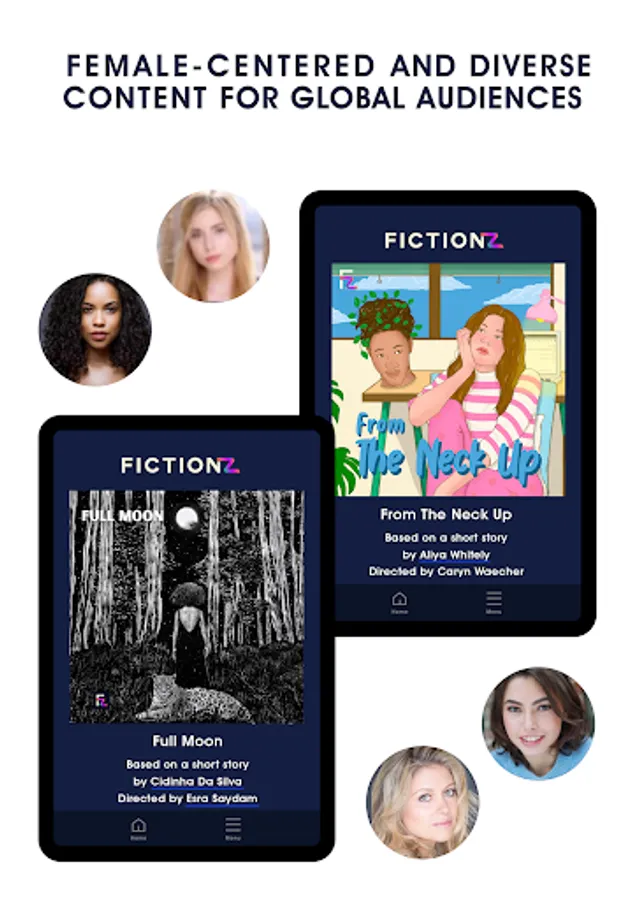 FICTIONZ is the first mobile app that streams premiere female-centric narrative podcasts to read and/or listen to ad-free. Each series has the highest production value and is made by movie directors and talented actors. Our stories are adapted from many award-winning short stories, books, and original ideas. The immersive platform and app feature only stories with female writers, directors, or protagonists - and sometimes all of the above. The First Episodes are always free. Sign up for a Monthly or Yearly subscription! New Series Premiere Every Two Weeks! Listen and see for yourself!