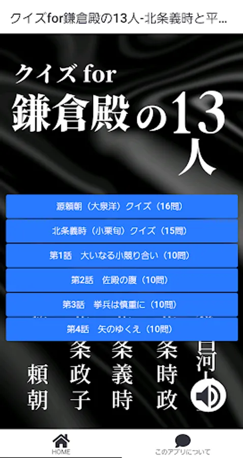 This app is an unofficial quiz app made by fans of NHK Taiga drama "13 people of Kamakura".
