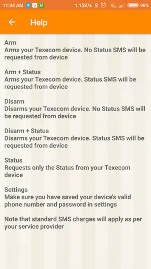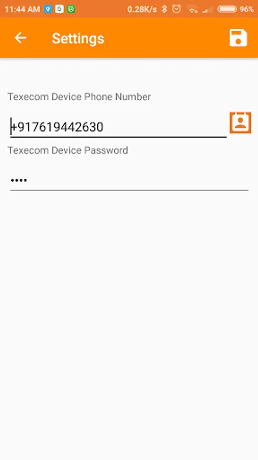 Make sure you configure the device SIM (phone) number and your device password in settings section of the app before using the app.