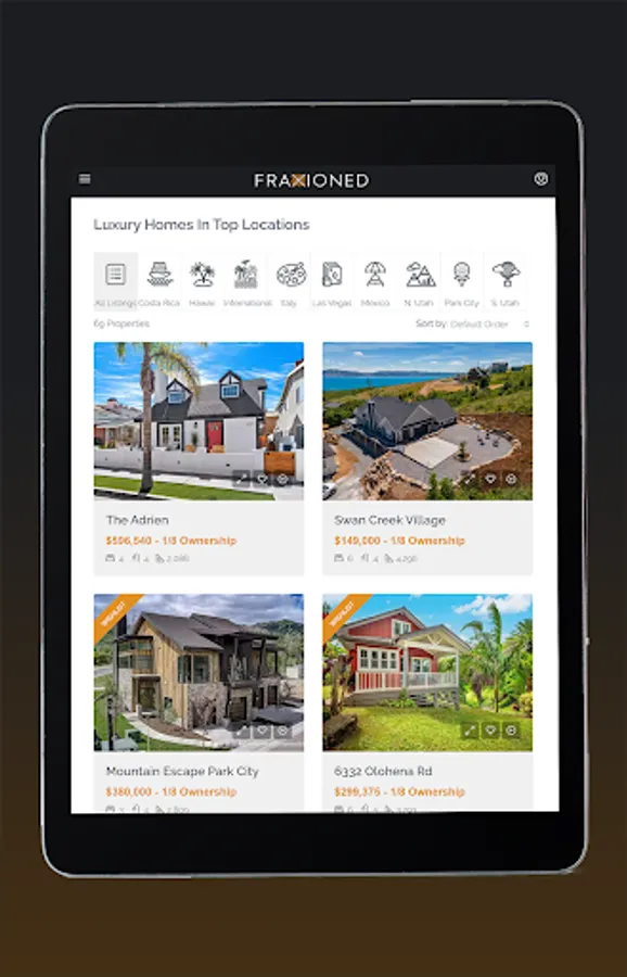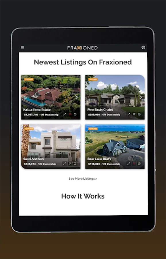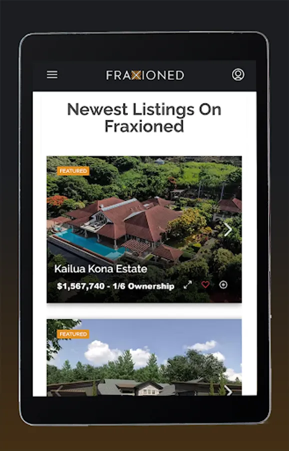 Fraxioned properties are partial-ownership homes where you may purchase a liquid and transferable portion of ownership of many top-destination homes. View the newest listings, make inquiries about the listings or selling a home to Fraxioned, manage your Fraxioned properties, or if you are part of our Ambassador program, share properties with potential clients from our mobile app.