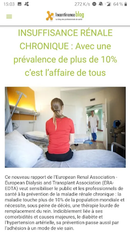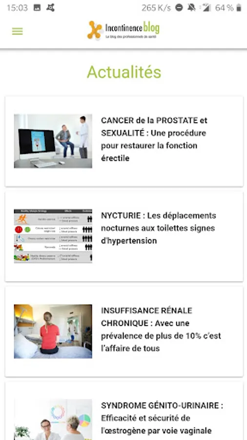 Health news for health professionals. This application is dedicated to the topic of incontinence in women, incontinence in men and incontinence in elderly patients.