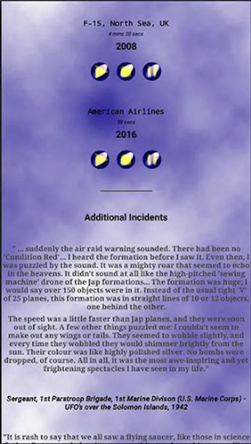 An informative guide tool for anyone interested in the study of UFO's (Ufology), with actual audio from genuine UFO encounters, and handy links to other cases of interest spanning the last 50 years and more.