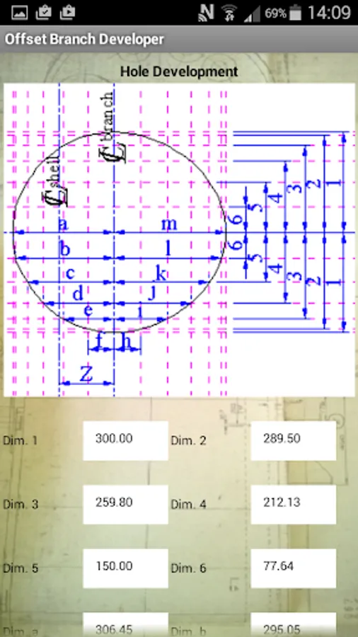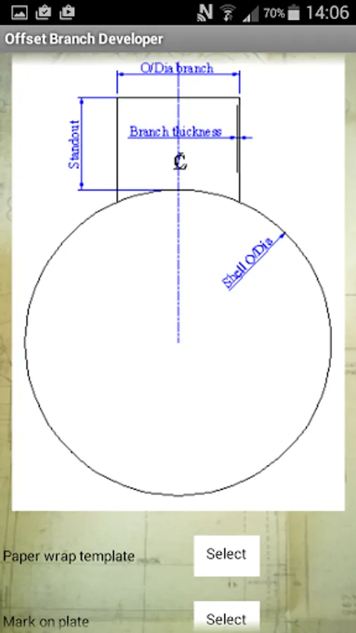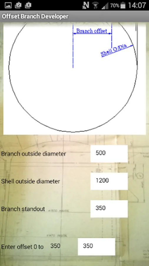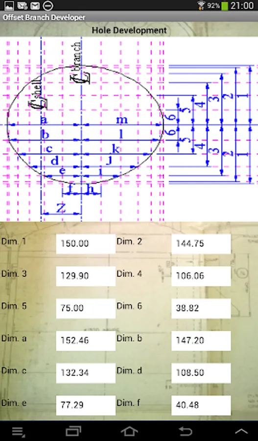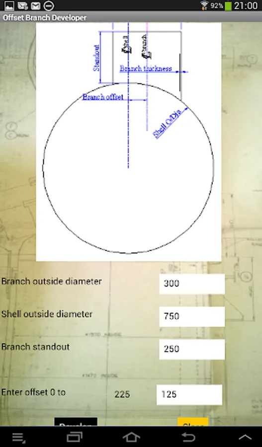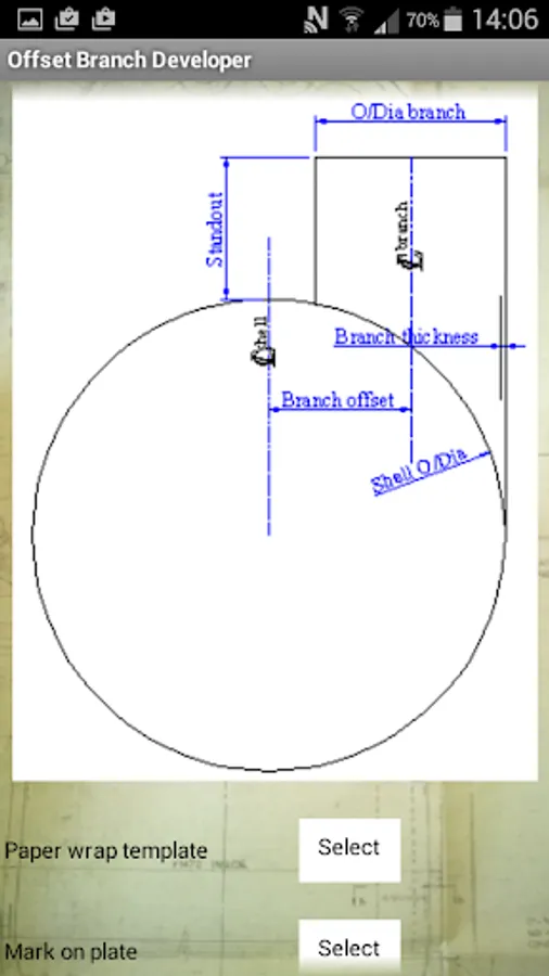 With this Offset Branch app you can quickly develop the pattern for the branch pipe shape and the pattern for the shell hole shape.