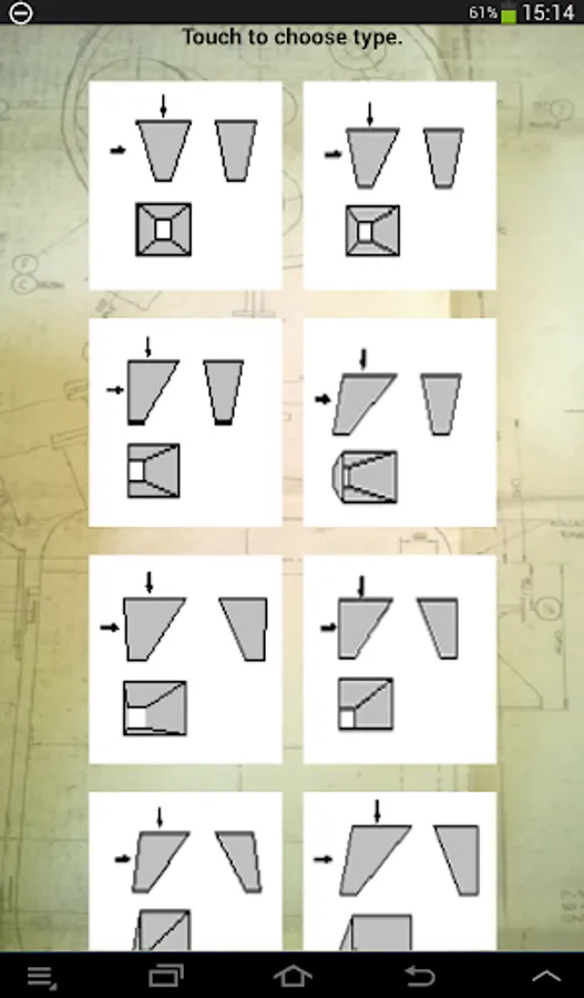 From the front screen choose the shape of the hopper/chute you wish to develop.