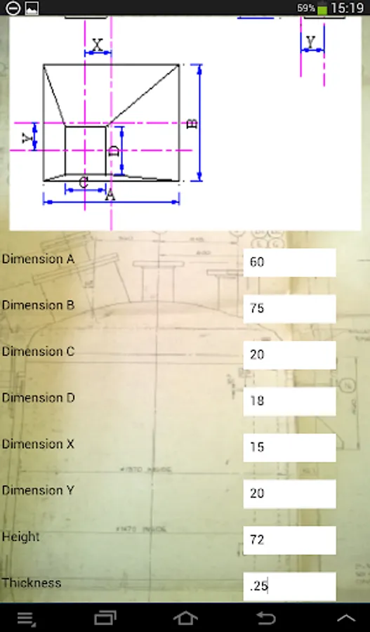 The developed dimensions for each side will be displayed along with a reference drawing for the dimension placement and general pattern shape.