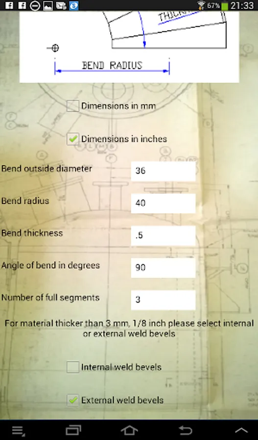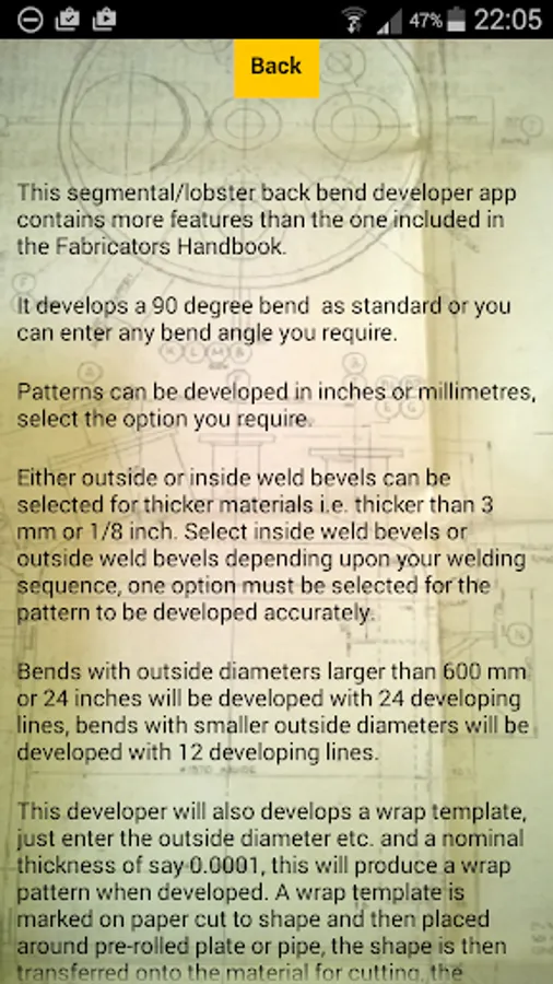 As a fabricator of 40+ years, the last 30 or so as the workshop manager, I have constantly used trigonometry etc. to calculate cones, segmental bends and much more. Nowadays I am constantly asked by the fabricators to calculate developed lengths etc. to save them the time and effort of laying it out. I have developed this app so that they can do it for themselves and therefore save “MY TIME”.