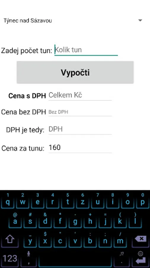 vypočítává cenu z tun