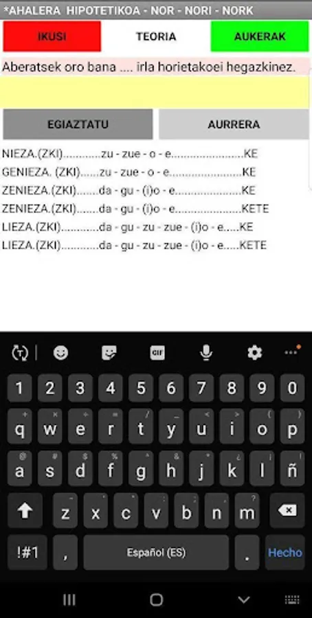 Subjuntiboak, baldintzera, ahalera, agintera, eta sinonimoak lantzeko esaldiak