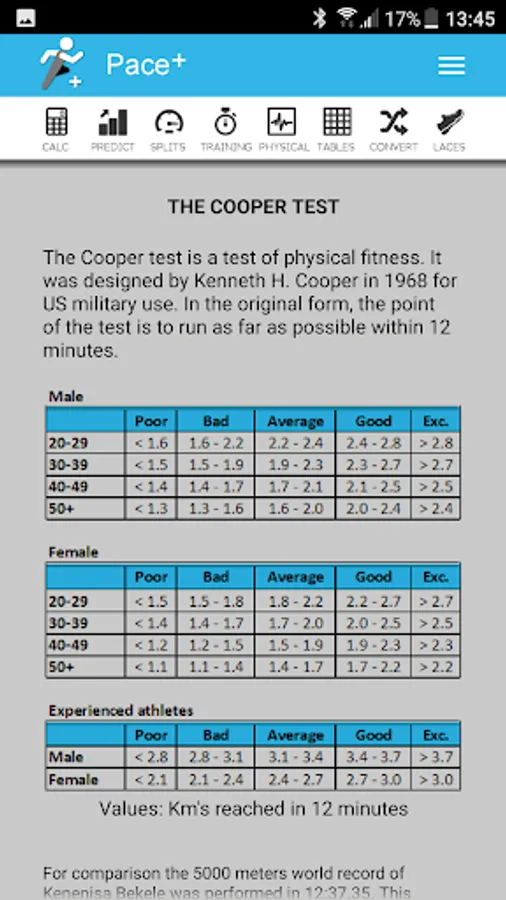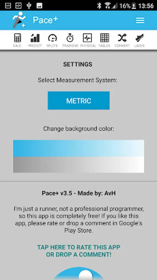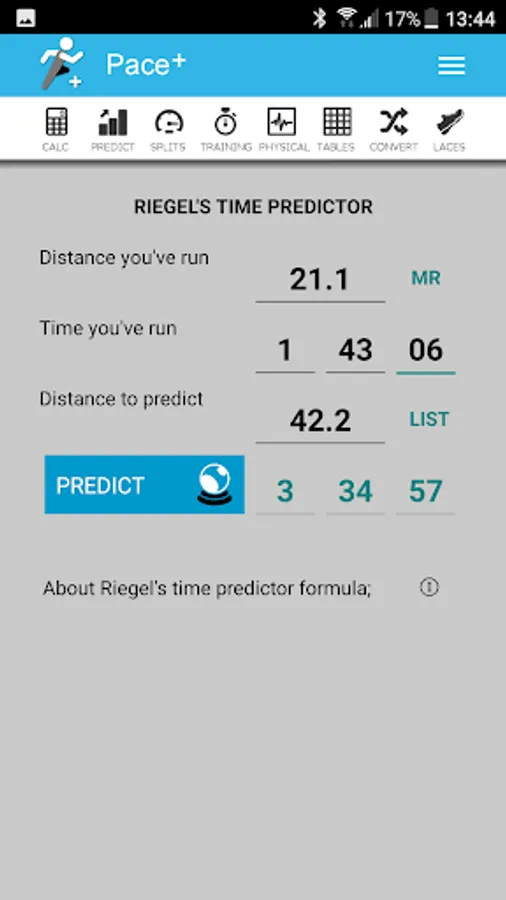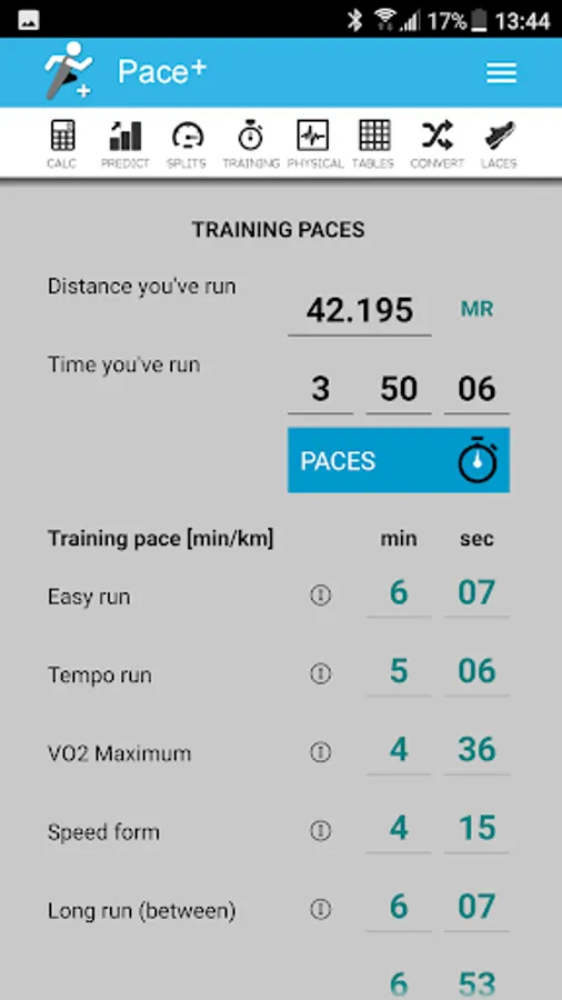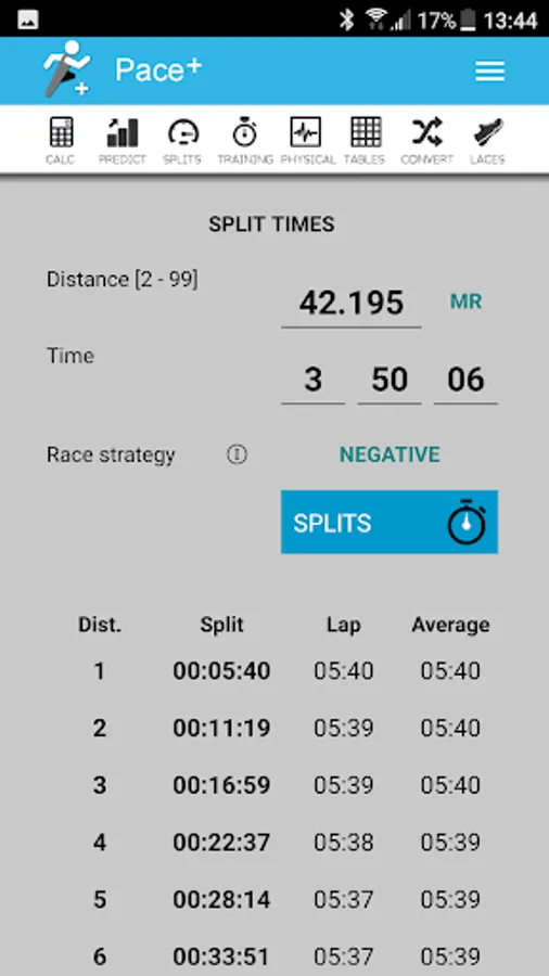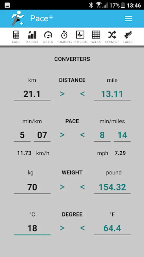 Pace+, the calculator and converter for runners includes: