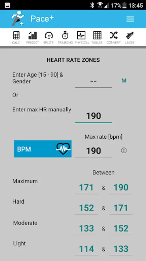 - Calculator for heart rate zones;