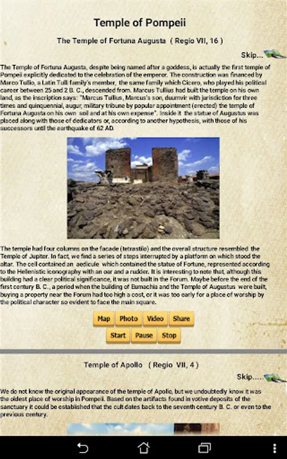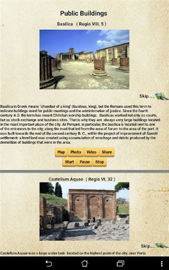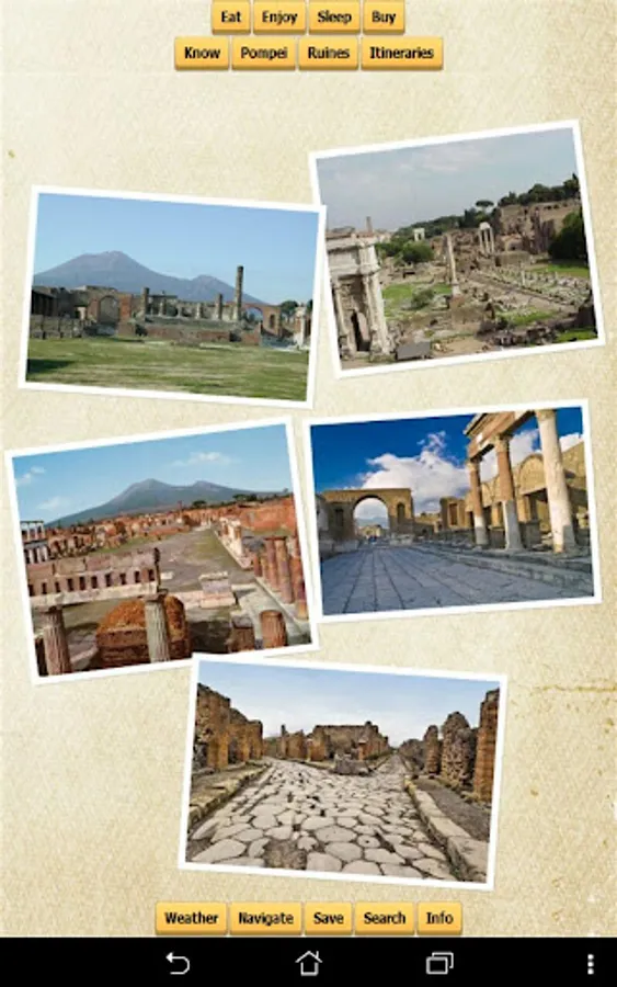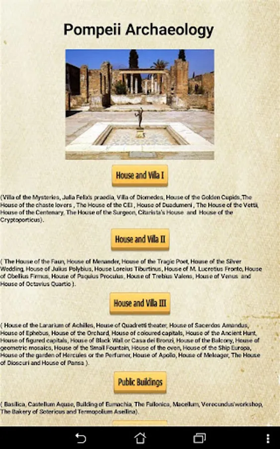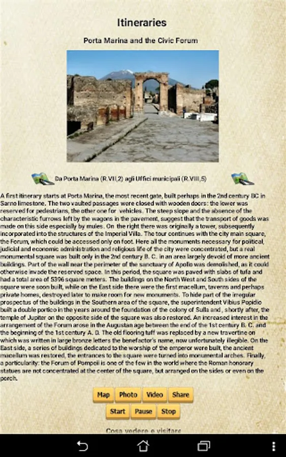Guide to the main monuments of Pompeii, with suggested itineraries, buy in Pompeii, eat in Pompeii, nights out in Pompeii, maps research and info. It has a vocal guide that will explain you, in detail, the artistic monuments you want to visit and will accompany you by hand. This giude will be enhanced in Pompeii something pleasant and carefree.