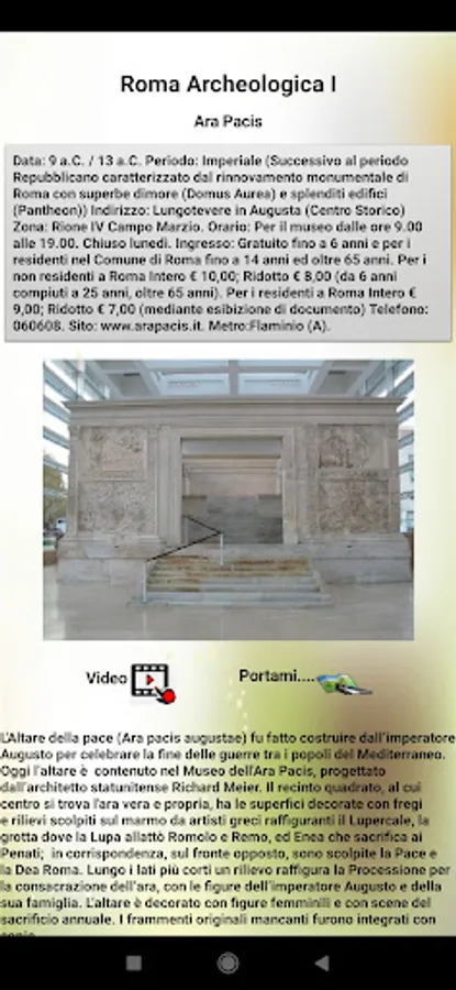 Guide to the most beautiful things in Rome, with live webcams in Rome, with recommended itineraries, what to buy in Rome, what to taste in Rome, go out in the evening in Rome, move around Rome, events, children and info. It has a voice guide who will explain in detail the artistic monuments you want to visit and will accompany you by the hand to find monuments, hotels, restaurants and much more. This will be enriched more and more and will make your stay in Rome a pleasant and carefree thing. Let's see in detail all the focal points of the Rome guide: