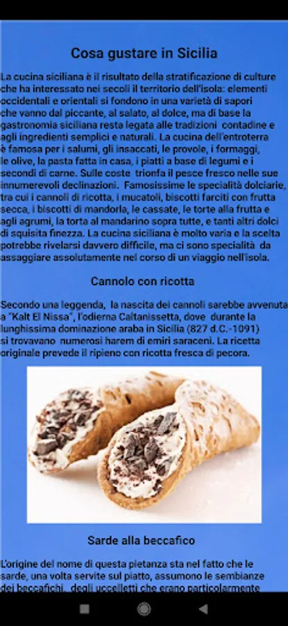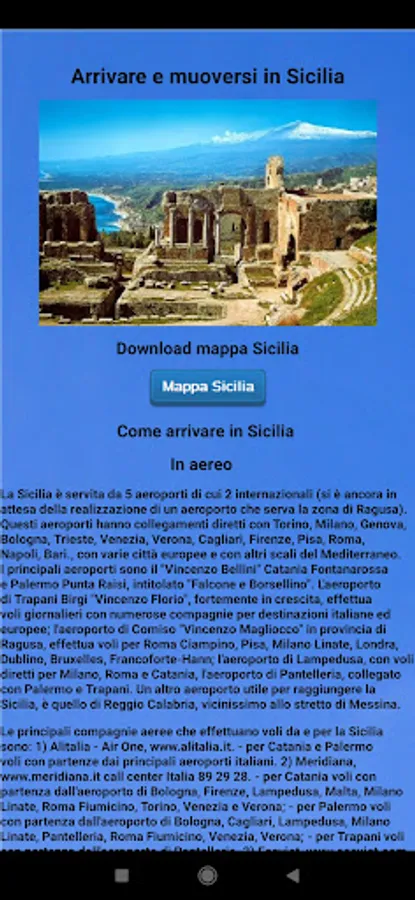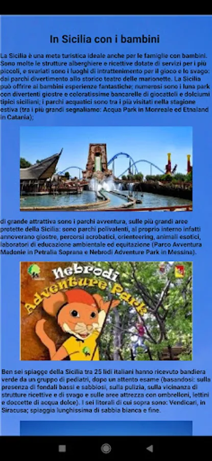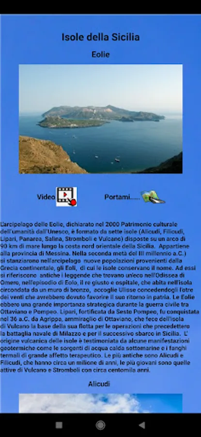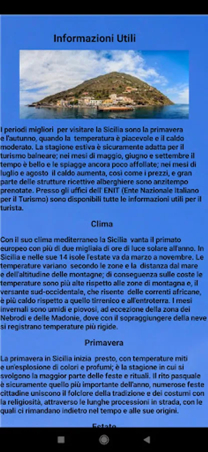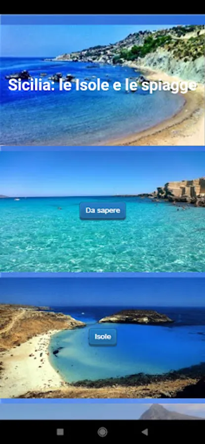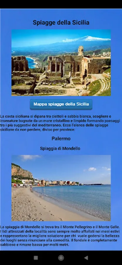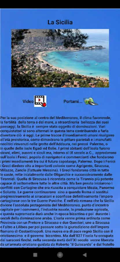 Guide to the most beautiful things in Sicily, beaches, islands, what to buy in Sicily, what to taste in Sicily, arrive and move around Sicily, events, playground, around me and info. It has a voice guide who will explain in detail the islands and beaches you want to visit and will accompany you by the hand to find hotels, restaurants and much more. This will be enriched more and more and will make your stay in Sicily a pleasant and carefree thing.