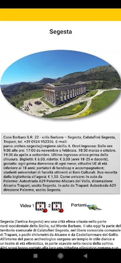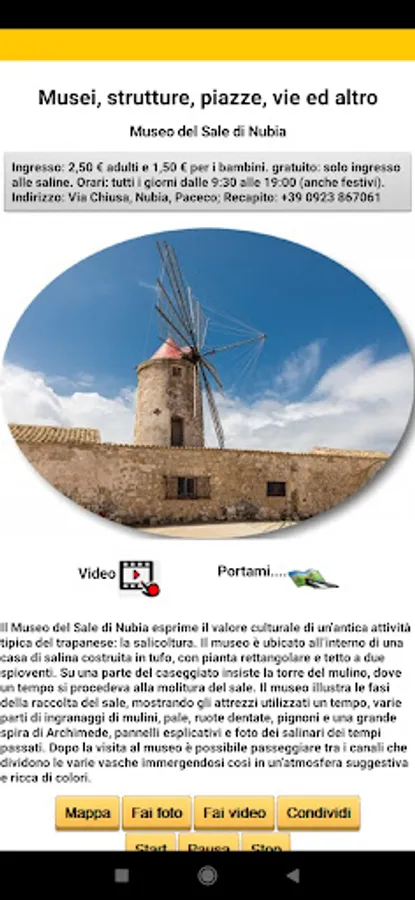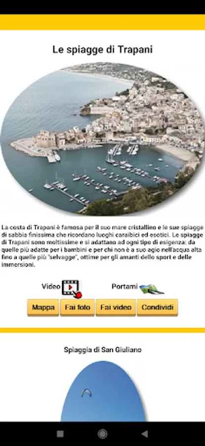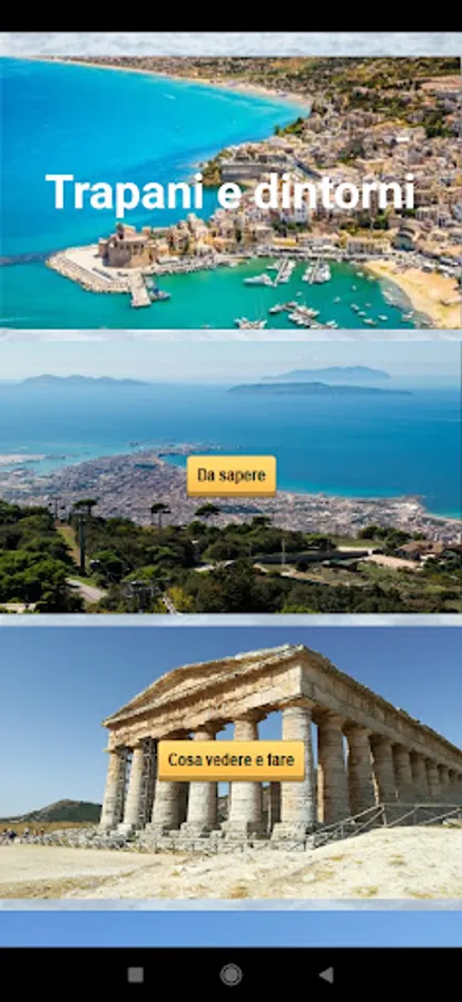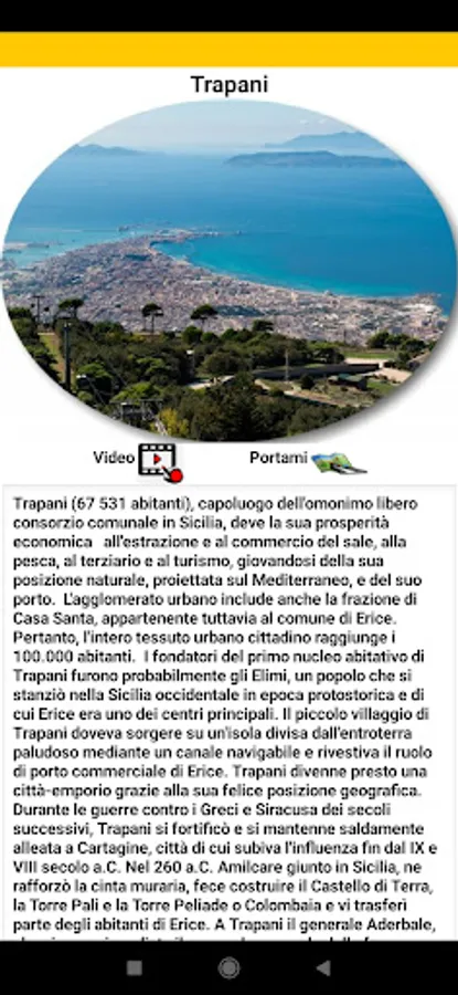Guide to the most beautiful things in Trapani, churches, museums and monuments, Erice, Segesta, Selinunte and the Egadi islands, the beaches of the Trapani coast and the Egadi. What to buy in Salerno, what to eat in Trapani, go out at night in Trapani, move around Trapani, events and parties. It has a voice guide that will explain in detail the structures or monuments you want to visit and will accompany you by the hand to find monuments, hotels, restaurants and much more. This will be enriched more and more and will make your stay in Trapani a pleasant and carefree thing.