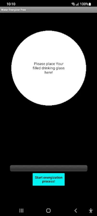 With the help of this app it is possible in the simplest possible way to treat your drinks of any kind* with positive information-energy. Just start the application and place the smartphone on a flat surface. Now set a full glass** on the indicated area and activate the energization by pressing the appropriate button.