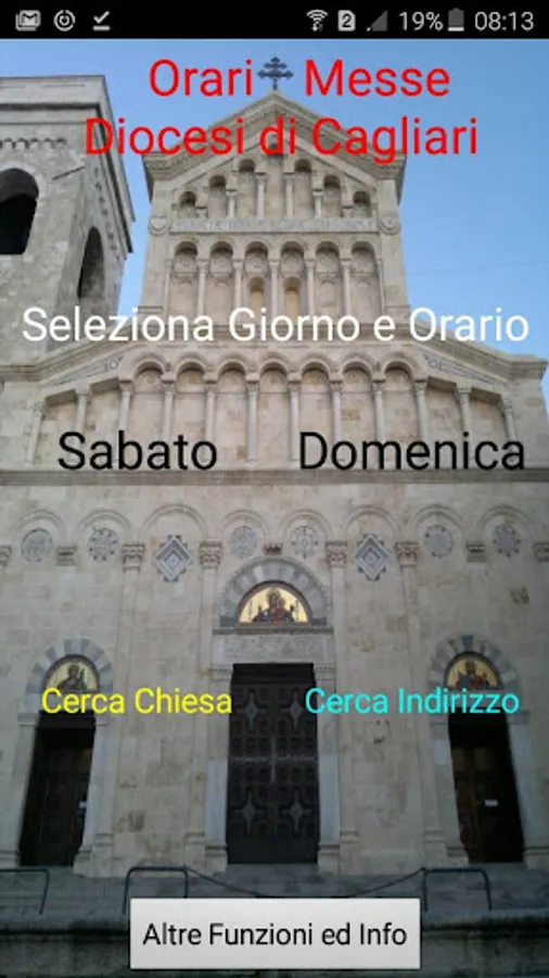 It allows you to identify the churches that celebrate mass at the requested time. It also allows you to have additional information on the churches of Cagliari and how to reach them through the navigator.