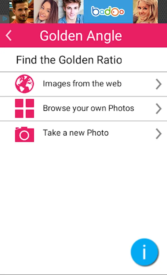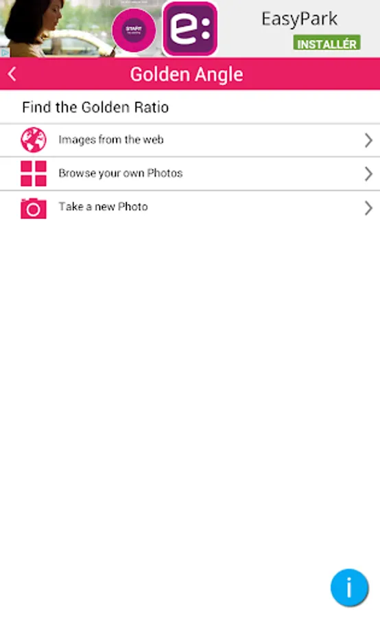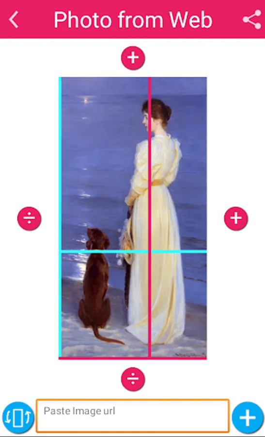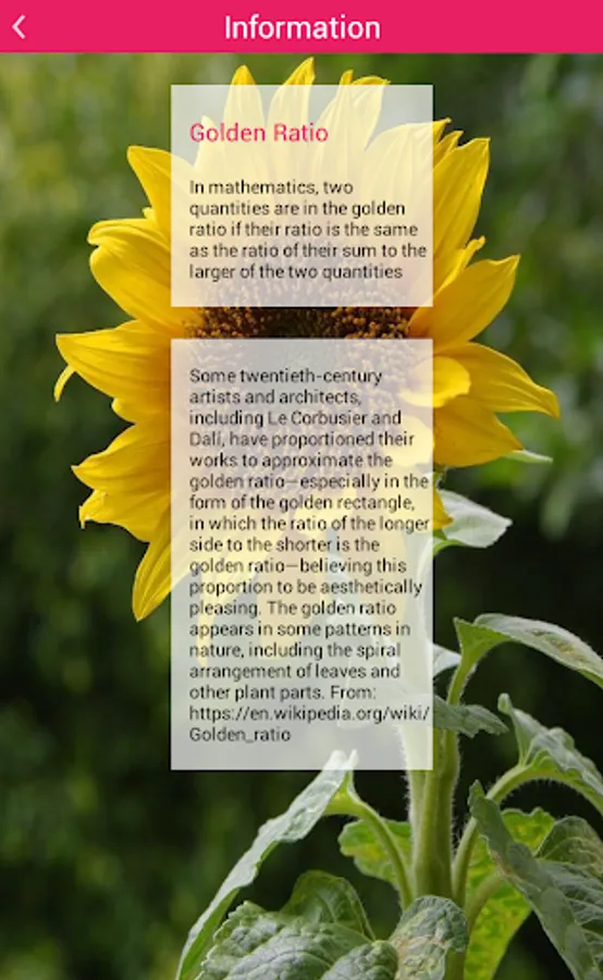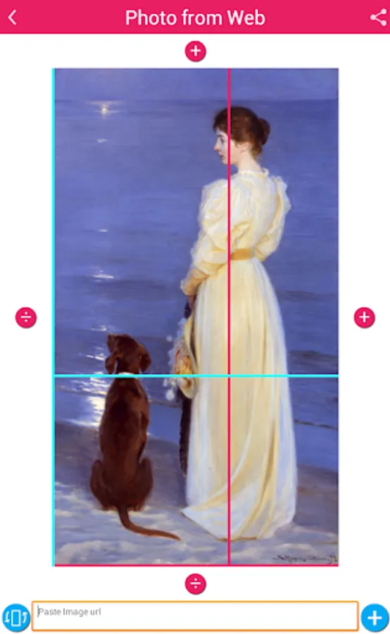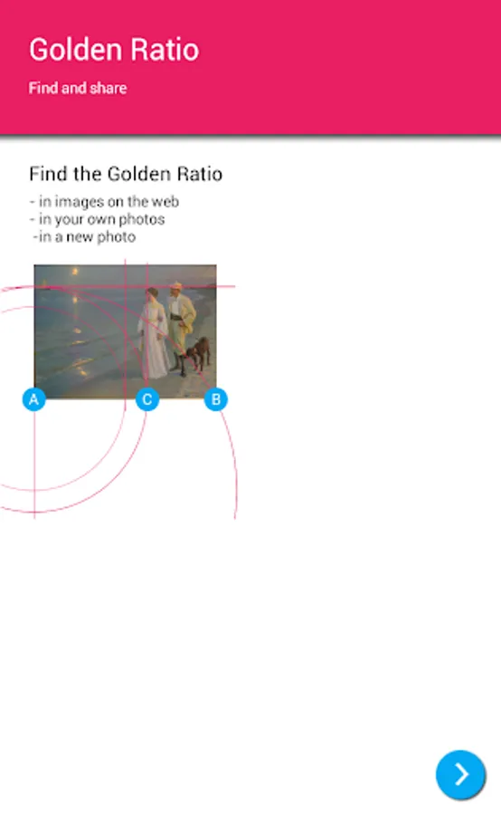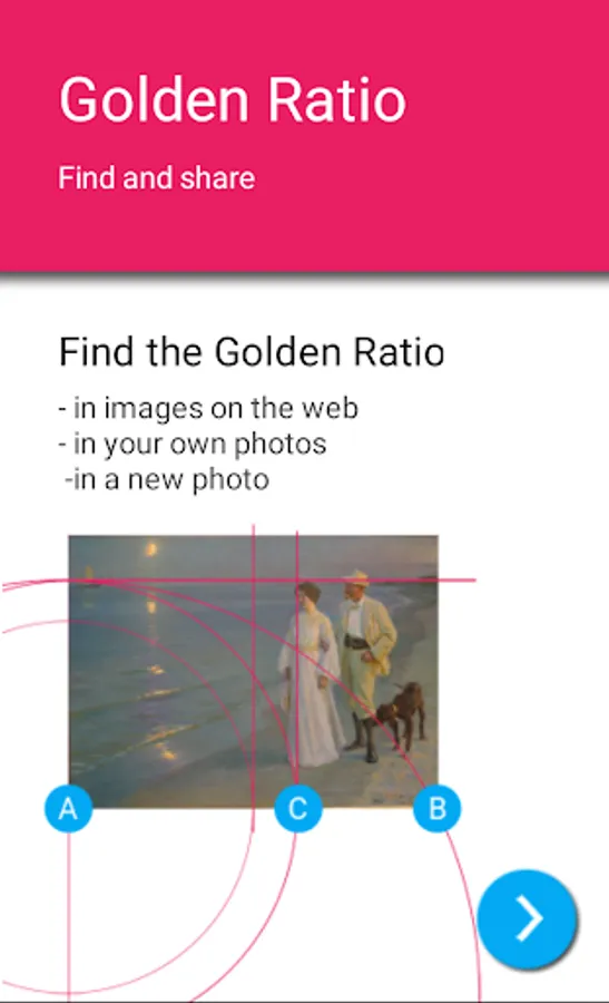 Browse the web and find art. Copy the url and paste into the app. Click the buttons to find the Golden Ratio in the image.