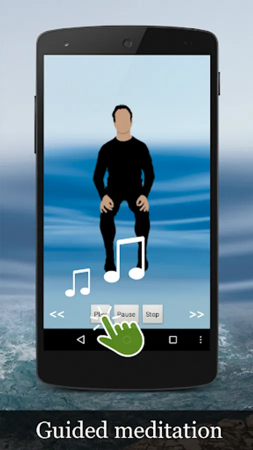 This app contains a recorded meditation that lasts 12 minutes. It is a simple guide to relaxation and breathing exercises.