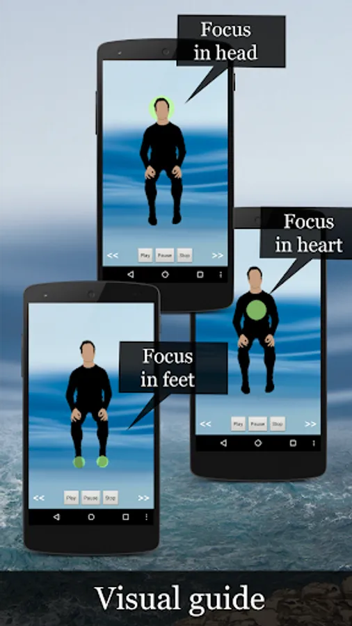 The guided meditation is followed by a visual representation of a body that highlights the area to focus.