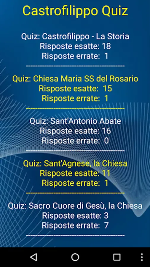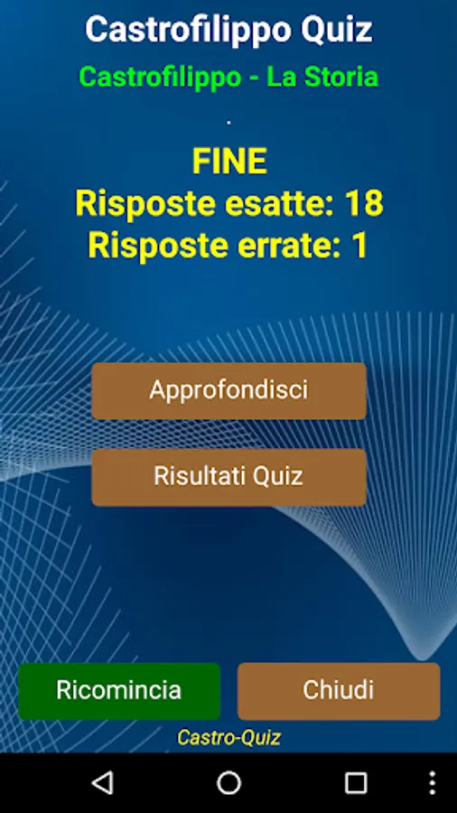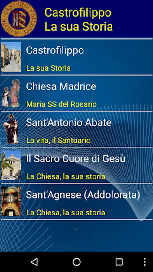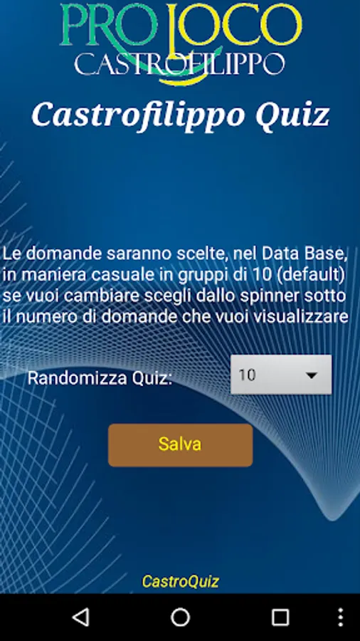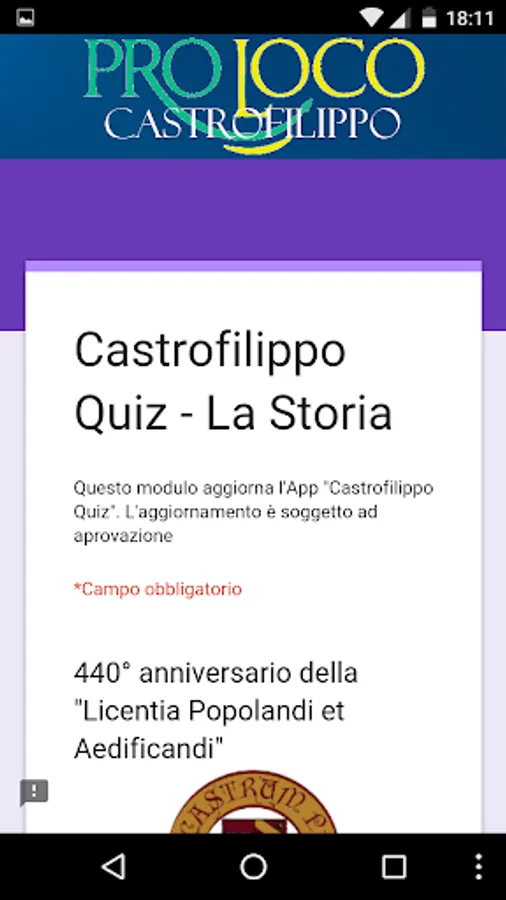 The application is a trivia game with questions about the history, the churches, the places and the characters Castrofilippo, to whom we must give an answer.