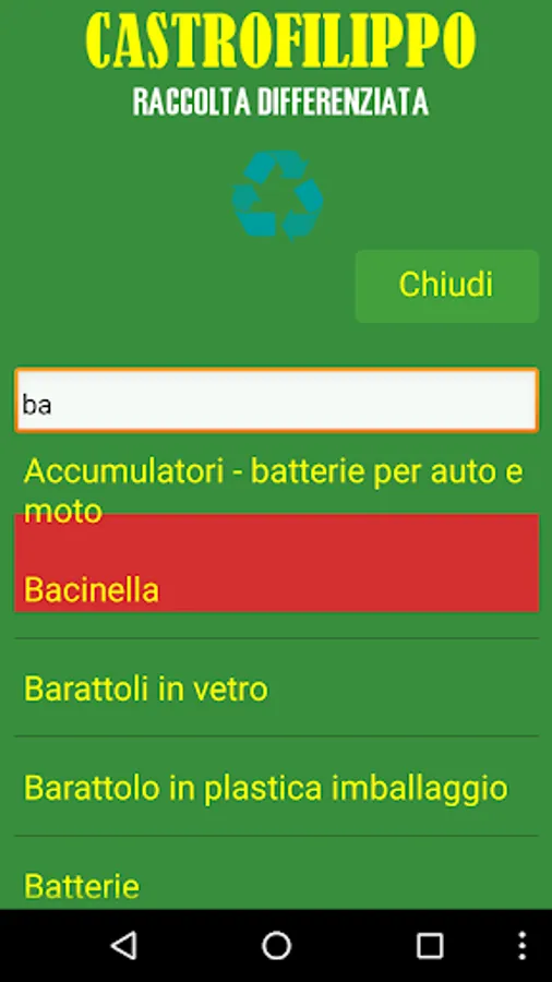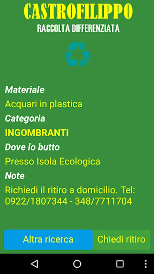 A useful "Dovo I throw" function will look for the material in the application database and indicate a category and destination of the waste.