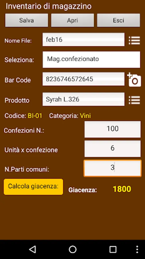 Detection of inventories by scanning the bar code for the product selection.