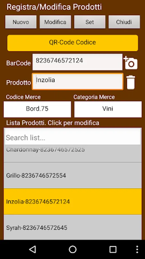 2) management of barcodes with the QR-Code generation with saving and sharing;