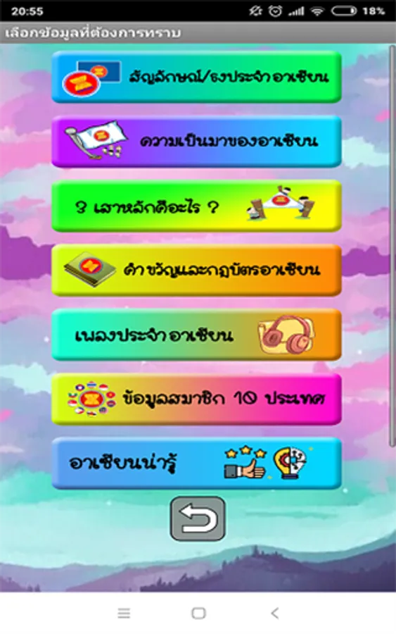 About ASEAN without using books Can read and learn at any time Through this ASEAN education application