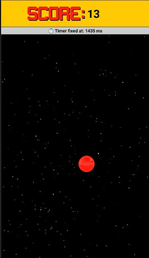 Once you start the game,the red ball will move everytime you click on it. For each click the timer loses 5ms (1000ms = 1sec). You can see the timer just below the points. More you play, smaller will be the redball. If the timer ends, you lose.