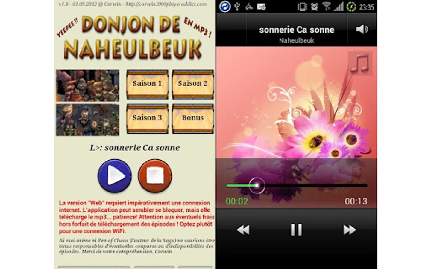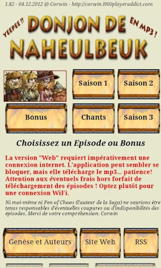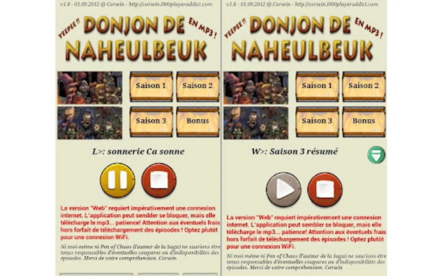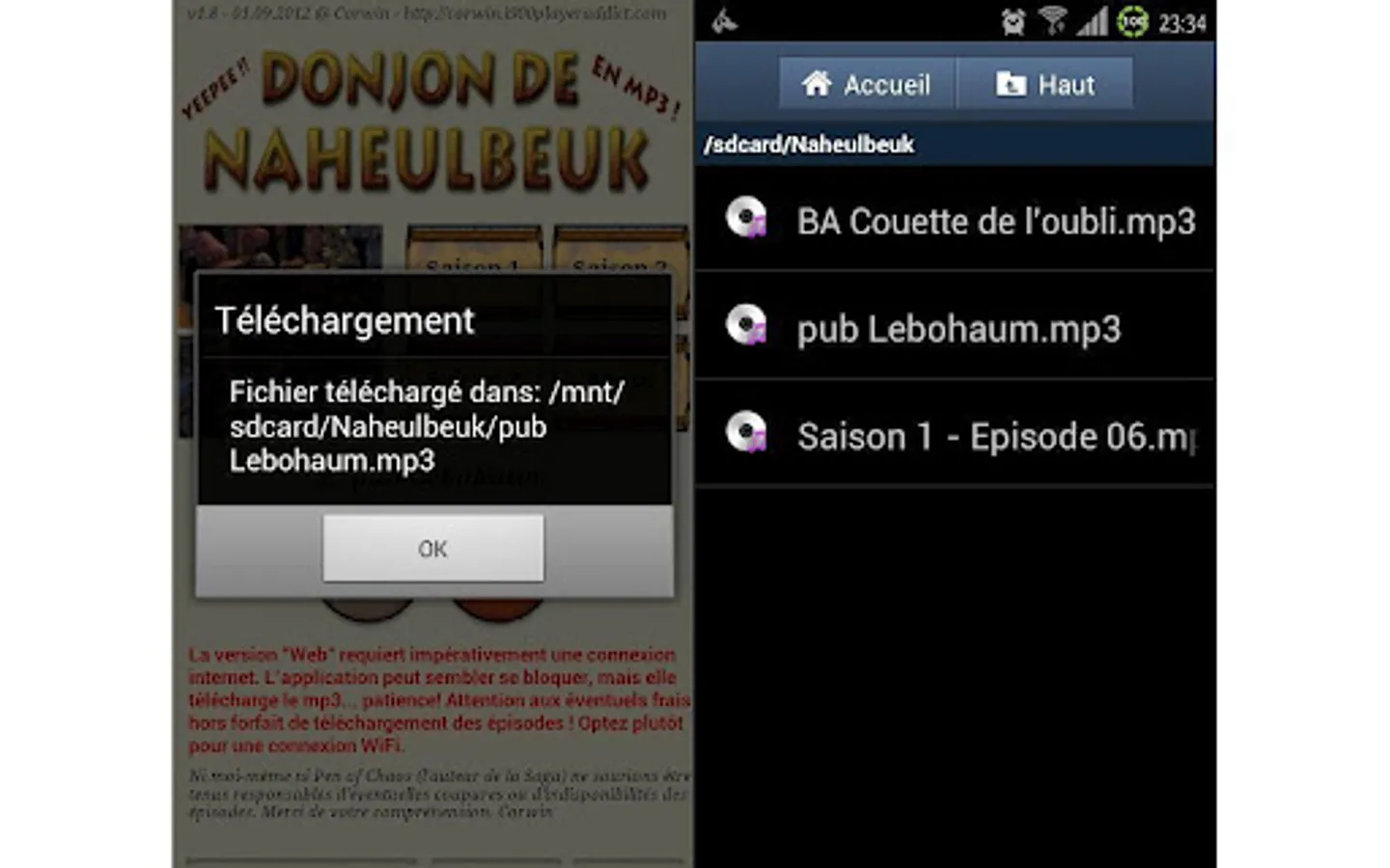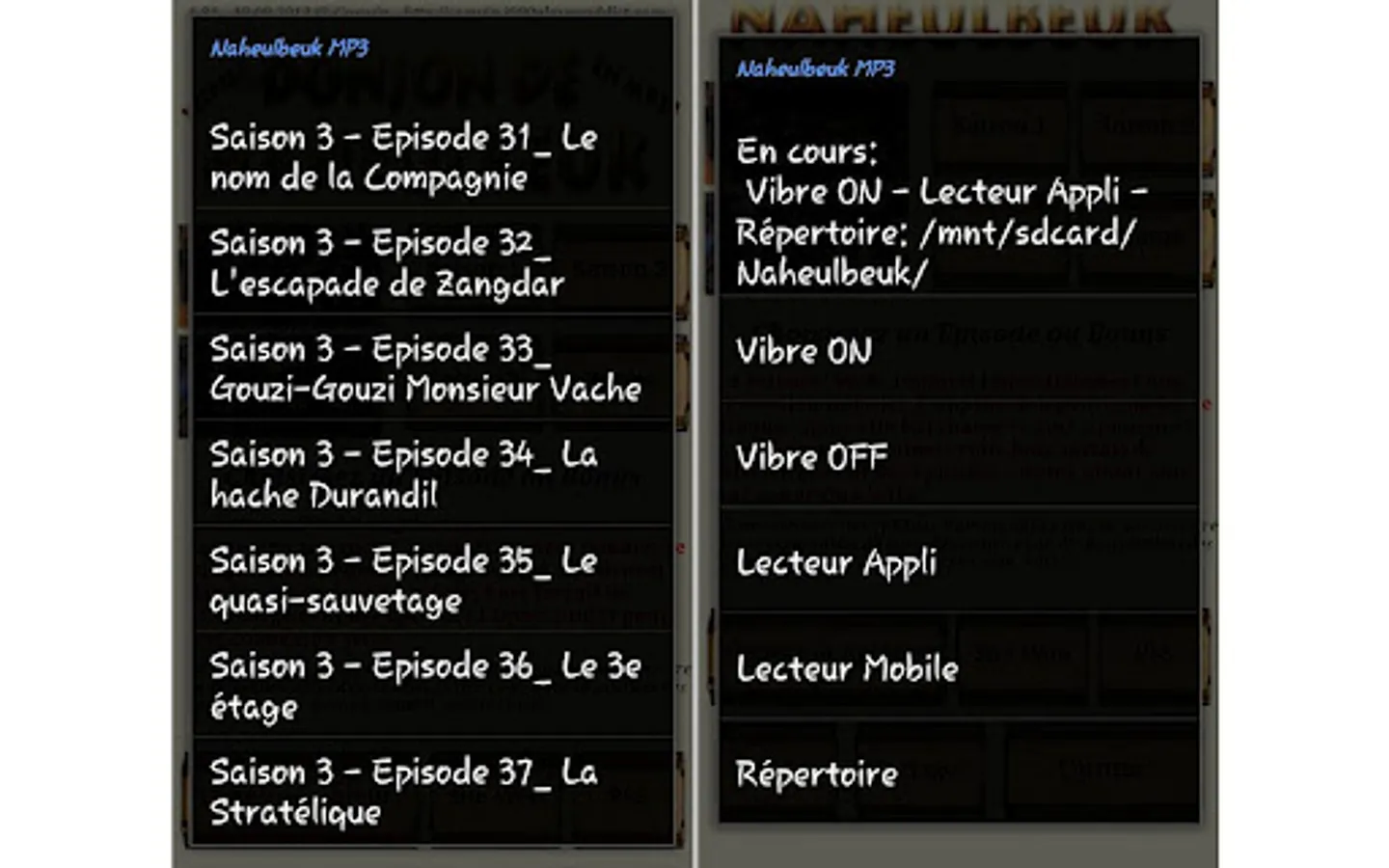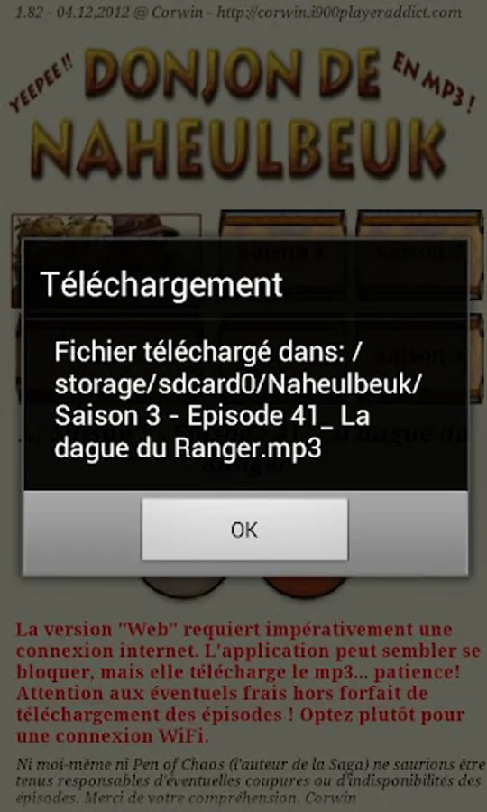 - Click the "download" button, while the right to recover on your smartphone the desired audio file. It will be saved by default in "sdcard / Naheulbeuk /".