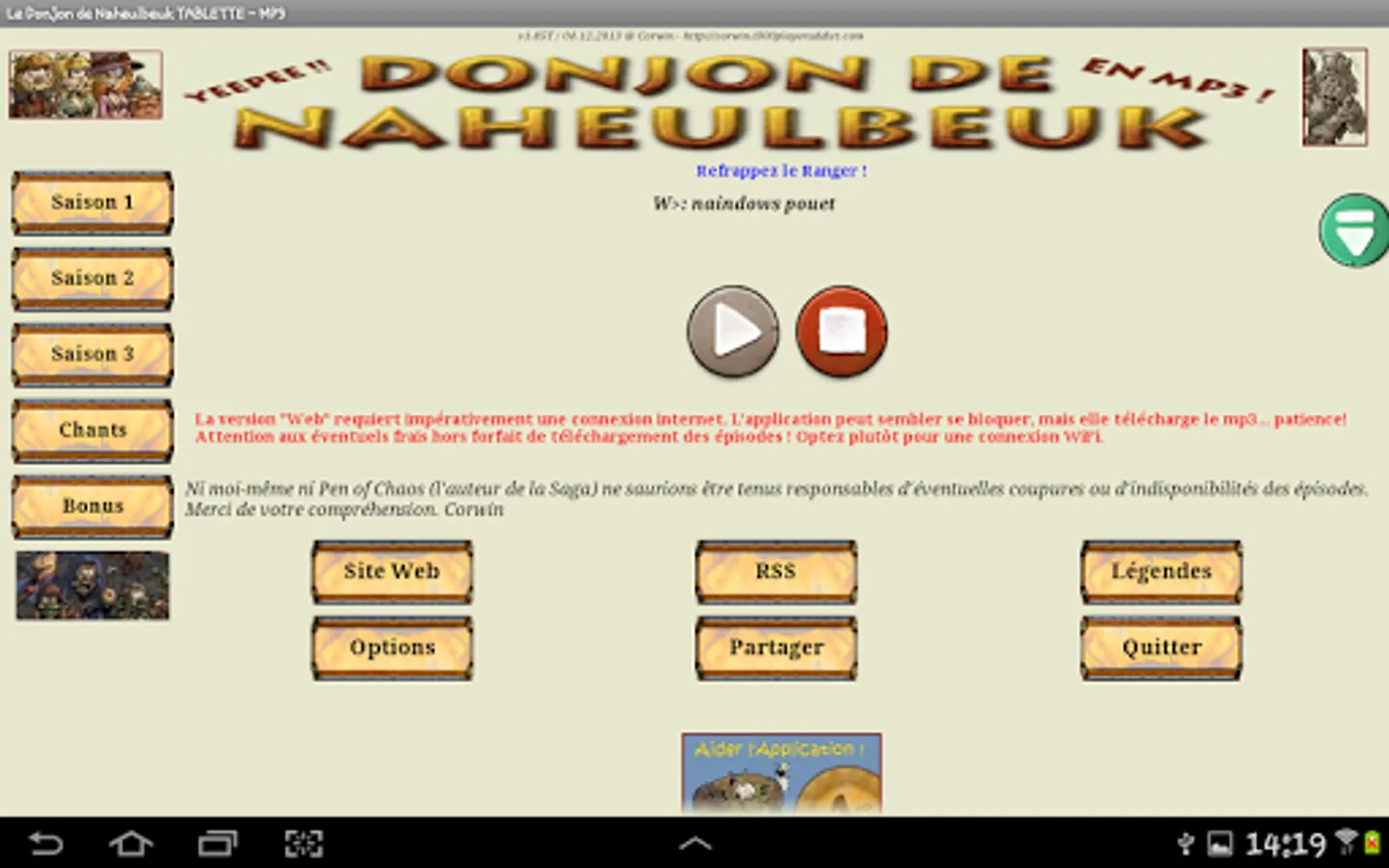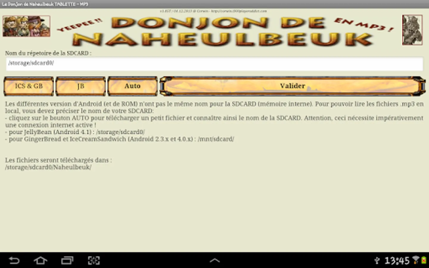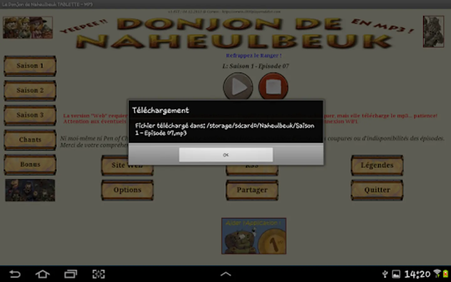 - Click the "download" button, while the right to recover on your smartphone the desired audio file. It will be saved by default in "sdcard / Naheulbeuk /".