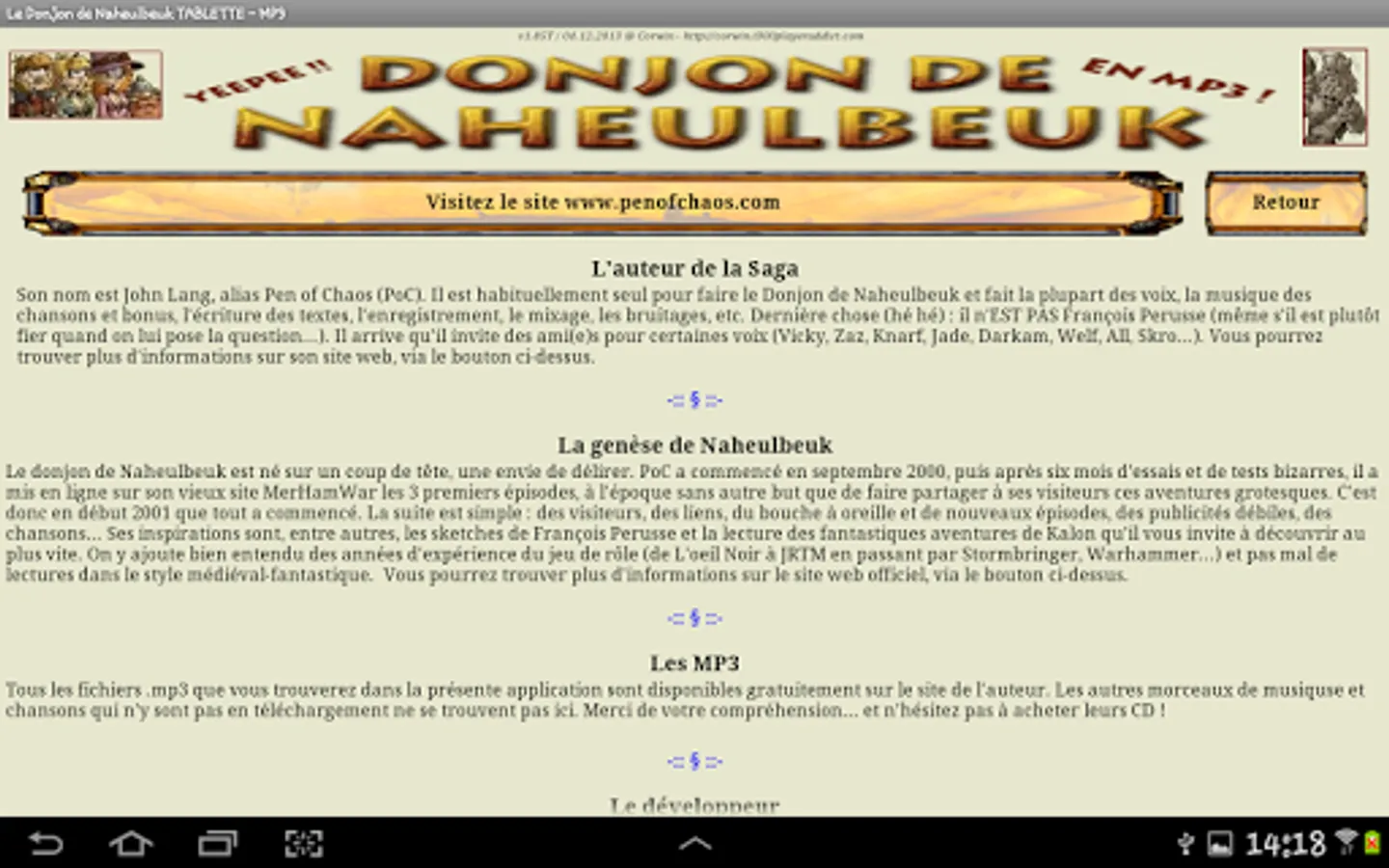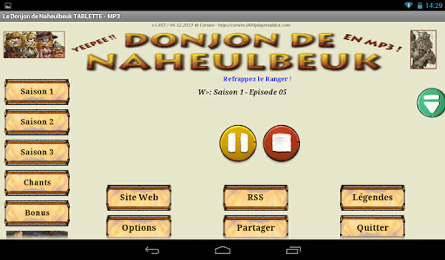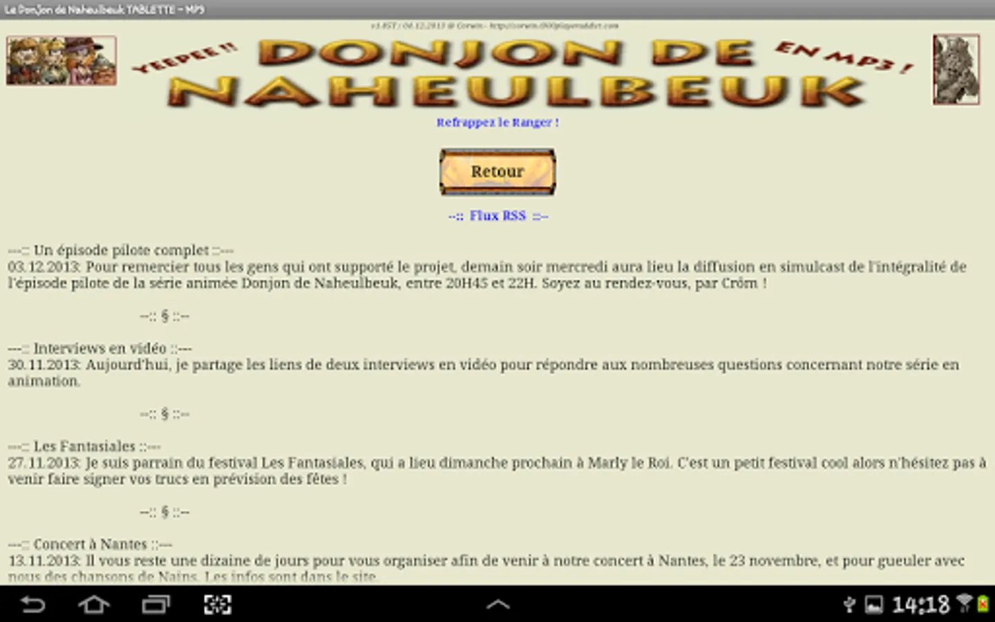 - Click the "download" button, while the right to recover on your smartphone the desired audio file. It will be saved by default in "sdcard / Naheulbeuk /".
