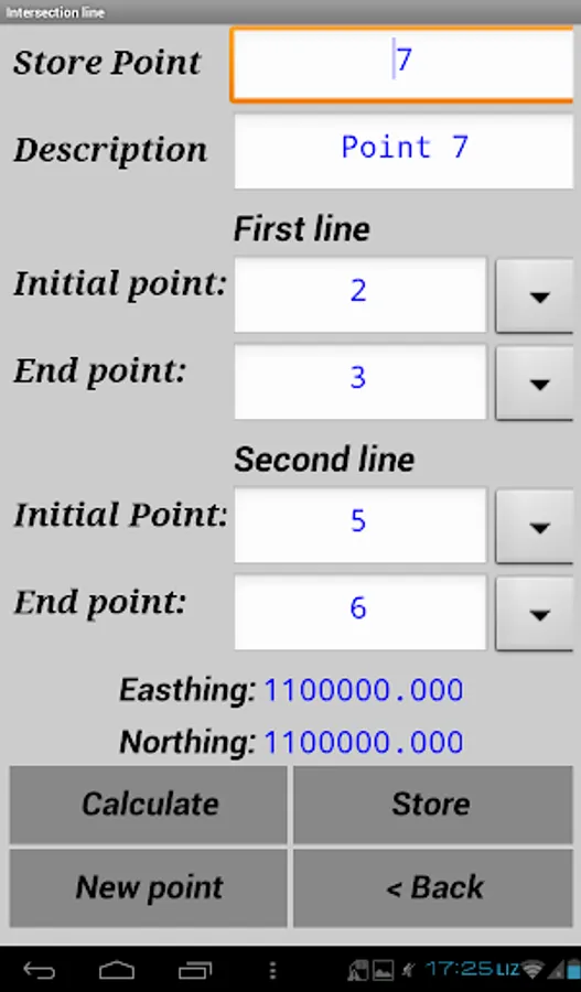 2. Calculate the coordinates of an intermediate point between two points on a line, and then use it in stakeout.