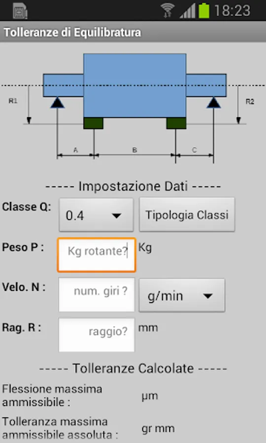 App for balancing of rotating, calculates the unbalance and deflection allowable of a rotating shaft. Conversion speed in revolutions per minute, description and selection of the balancing class according to ISO 1940.