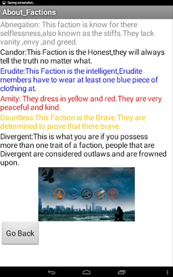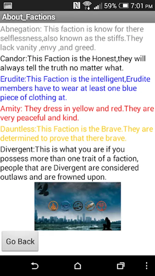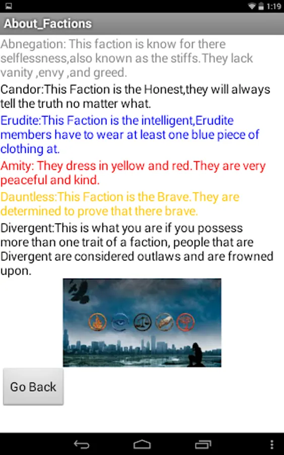 Note:Unofficial application based on the books written by Veronica Roth and the Divergent film; with Shailene Woodley ,Theo James besides Kate Winslet.