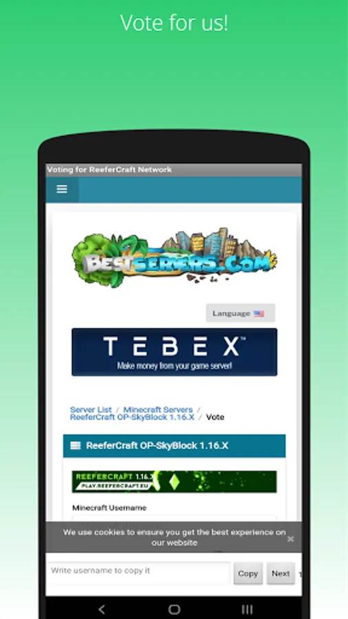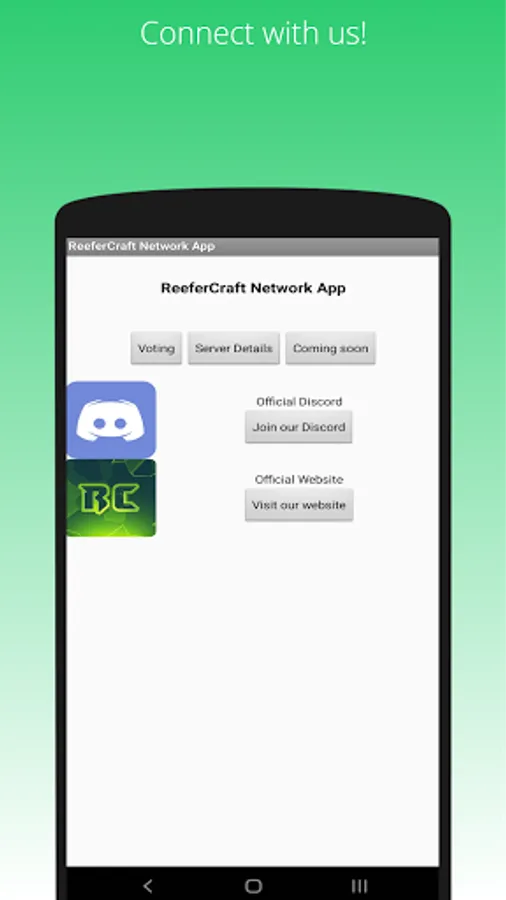 This app allows easy voting, easy access to all our platforms and live updates on the server and it's status.