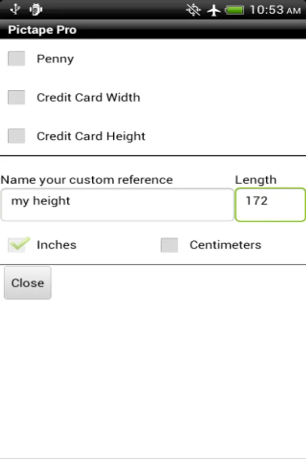 Imagine you need to measure something and you don't have a tape measure handy. Don't worry! Now all you have to do is take a picture of it (next to a penny or a credit card) and measure it right on your device! Download Pictape and you'll always have a tape measure available to you!