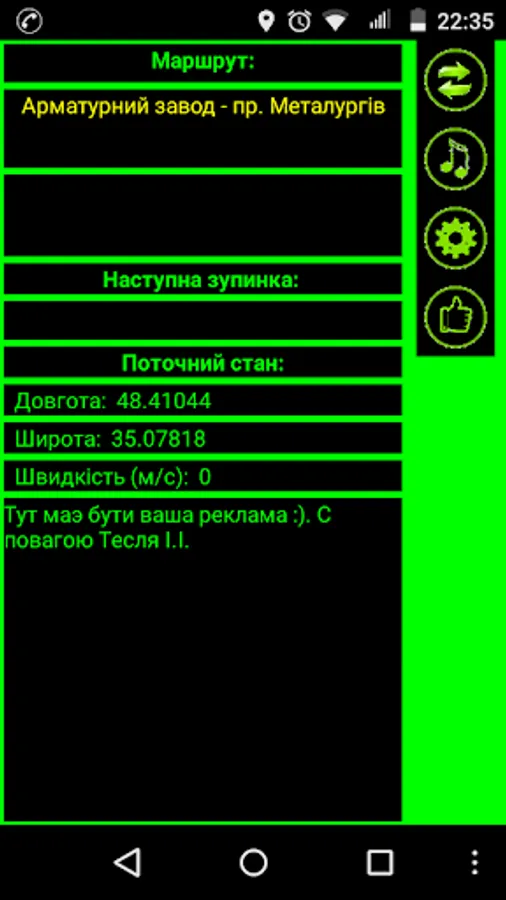 Mobile application for automatic (based on GPS) warning passengers about the current and next stop on the route, as well as other service information from the carrier.