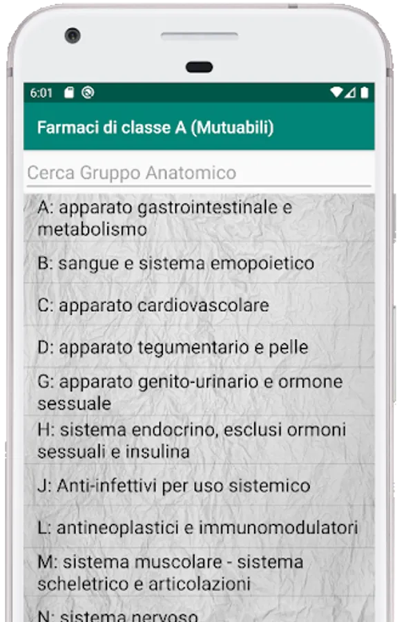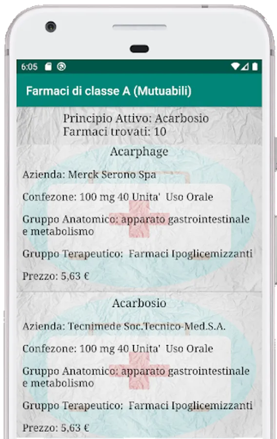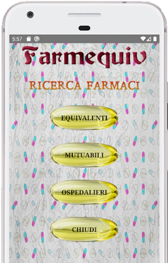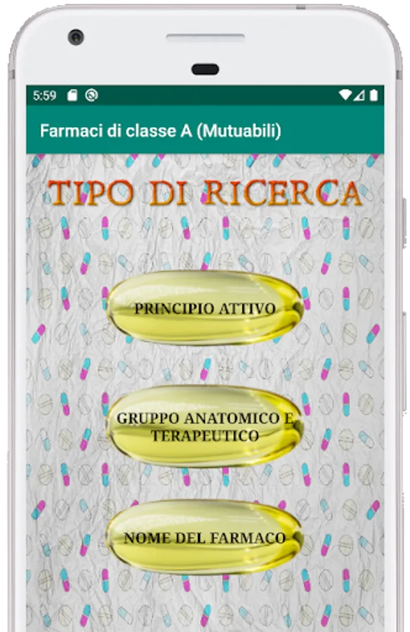 The application allows the search for equivalent, loanable and hospital drugs on the market, through three different modalities and precisely according to the active principle, the main anatomical and therapeutic group and with respect to the name of the drug.