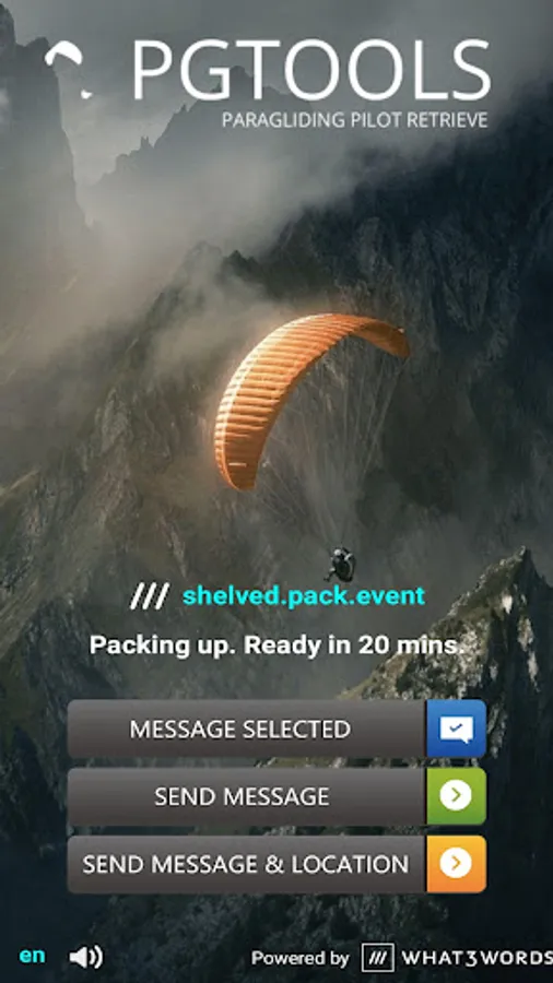This app determines your location in the what3words (w3w) format, in one of the 27 available languages, and allows you to send a message with a few clicks to the retrieve team.