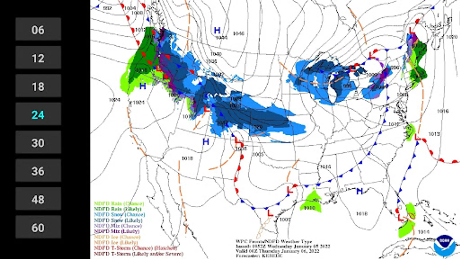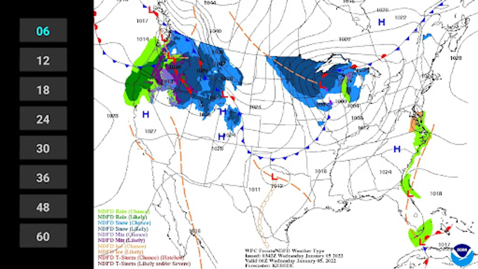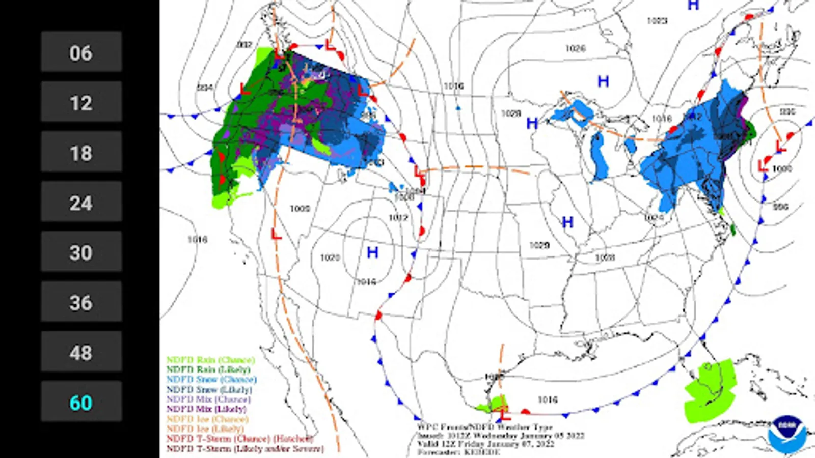 • NOAA-WPC forecasts for 6, 12, 18, 24, 30, 36, 48 and 60 hours
