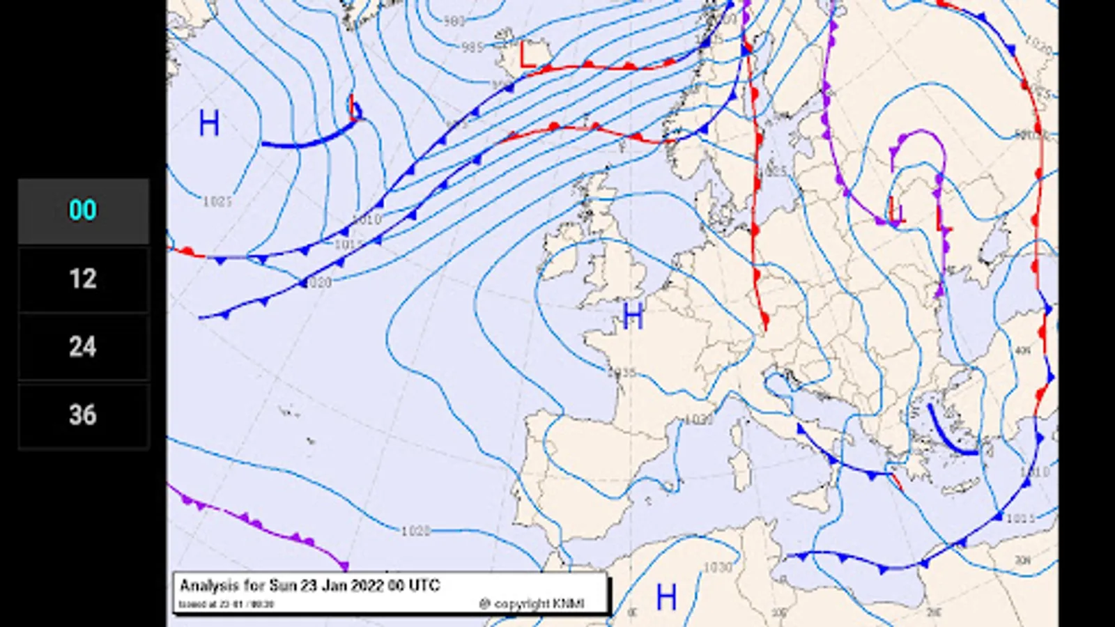 • KNMI analysis for +00 and forecasts for 12, 24 and 36 hours