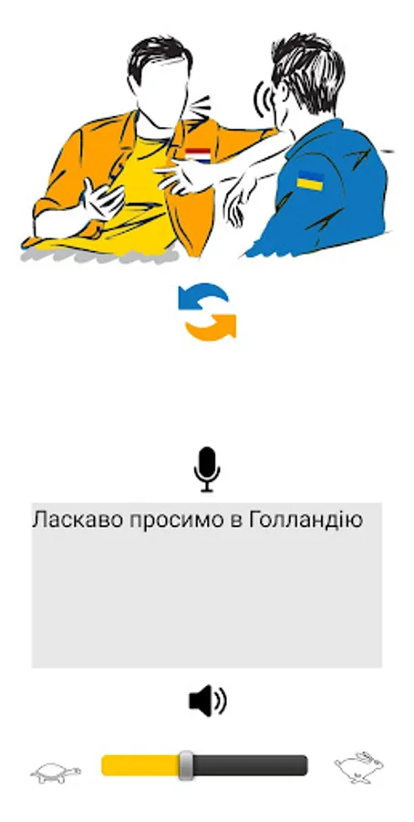 Click the orange-blue arrows to change roles between talker and listener.