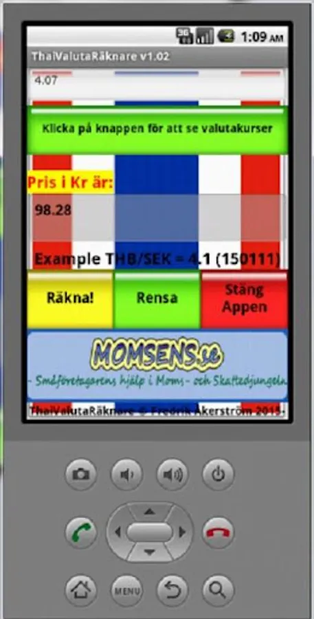 This is the ultimate currency counting app for Thailand. If you are planning, or are on the road, traveling to Thailand then this is the app you're looking for your android pad or phone. It is completely free for Sweden and Swedish users. There is an English version too but you have to pay for. This Swedish app is supposed to also act as a marketing ploy for Momsens.se that helps Swedish small business bookkeeping, VAT and taxes. But even you as an individual can find a lot of interesting information on the site. You simply get to the website just by clicking on the blue and yellow Momsens.se banner at the bottom of the screen in the app for currency conversion between Thailand and Sweden.