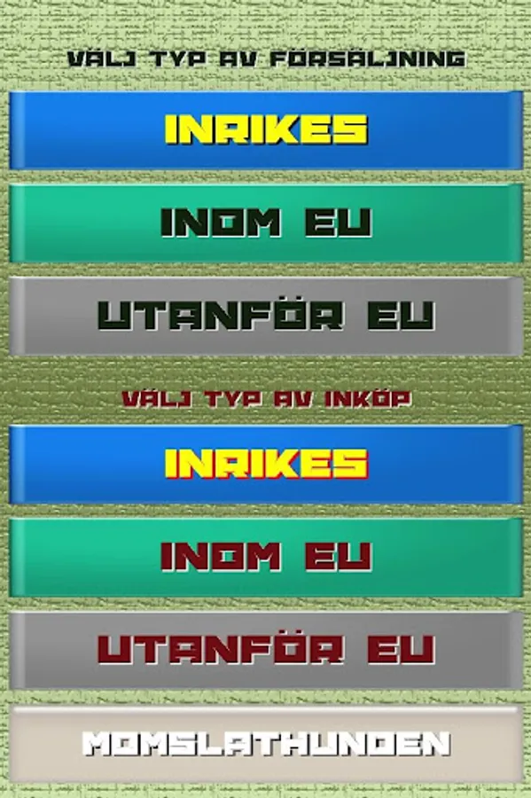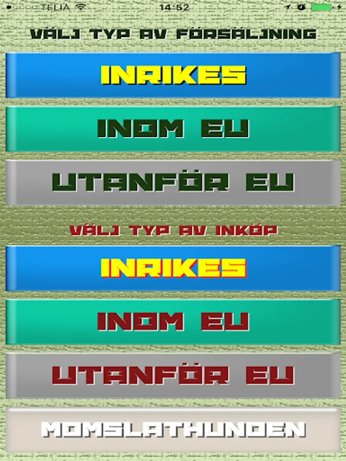 The free version of momslathunden is a fully functioning app, but want to help you with international trade and VAT handling of import and export, you must purchase the paid version (full version).