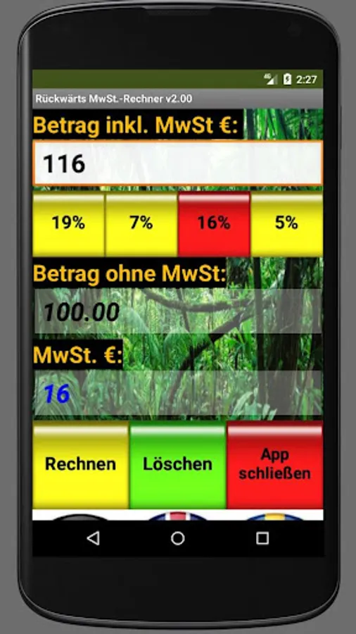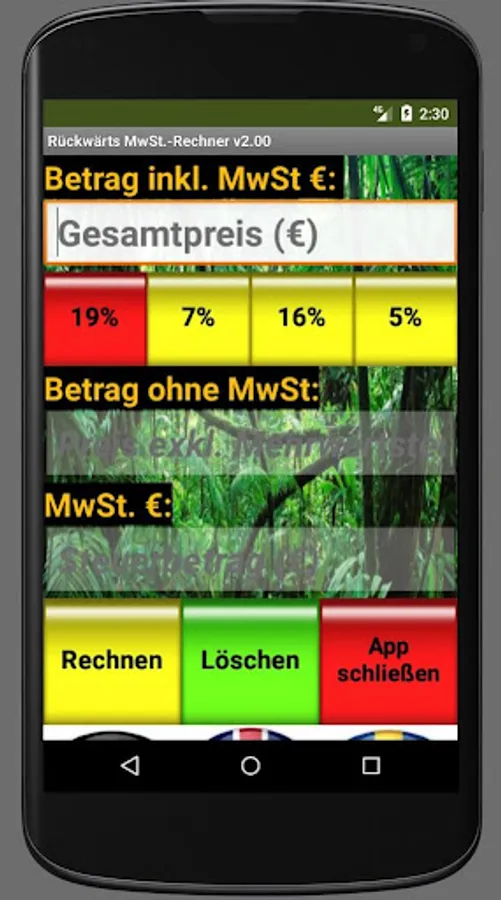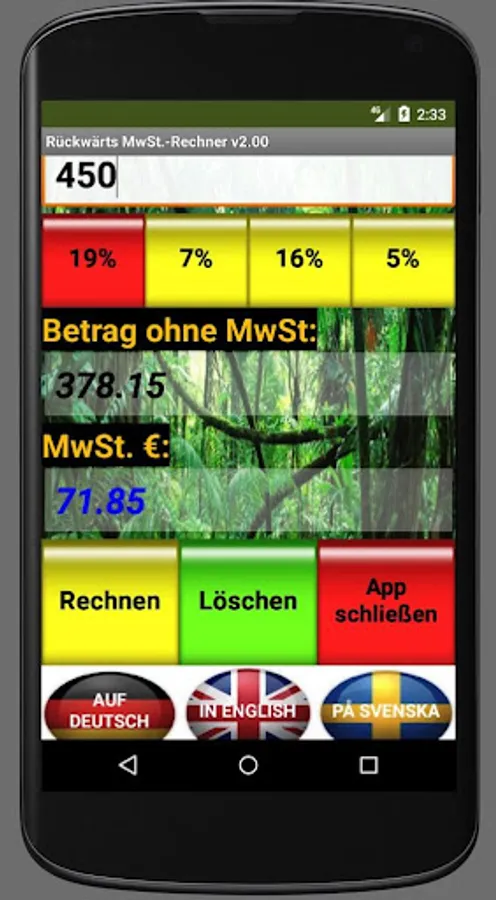 This app is part of a series of accounting and finance apps provided by dermwst.de -a website built to aid small business entrepreneurs. More info at https://dermwst.de/ruckwarts-mehrwertsteuerrechner/