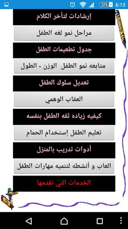 The program provides you with information about the stages of physical and motor, height and weight - the child's development stages of the growth of the language of the child - the timing of vaccinations child - How to train the child to use the bathroom - modifying the child's behavior - punishment placebo for the child - How to increase the confidence of the child himself - games and activities for child development skills - tools that can be used with the child at home -