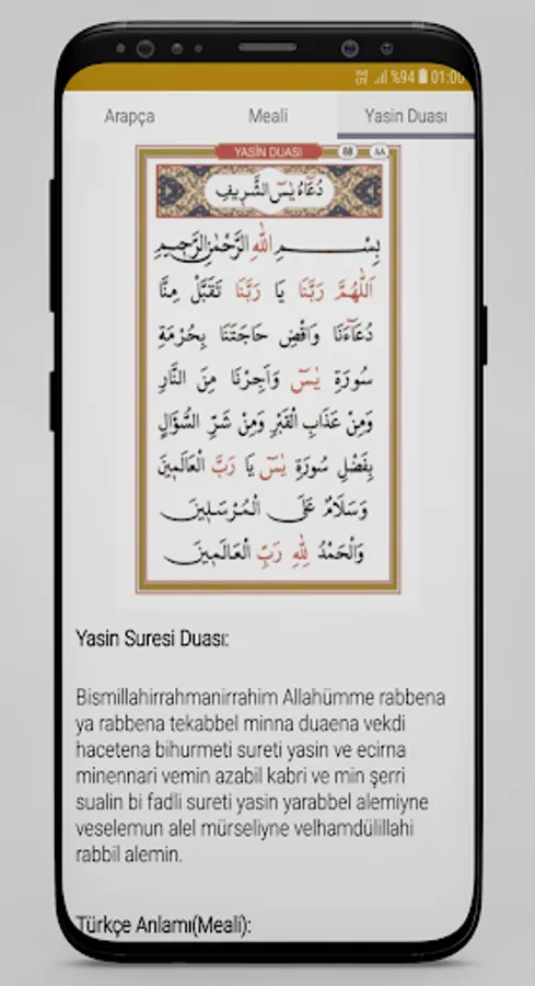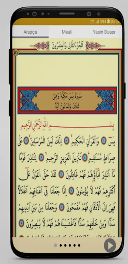 The application works without internet. In our application, there are Arabic recitation of Yasin Surah, Yasin Surah meaning, Yasin Surah prayer, Conquest Surah Arabic recitation and meaning. While reading Surah Yasin from its Arabic text, you can also listen to the recitation of each page separately. In addition, the application will send notifications in its prayers and verses and will allow you to benefit more.