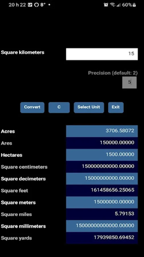 Precision Setting: the app lets you adjust the precision level up to 9 numbers after the decimal point.
